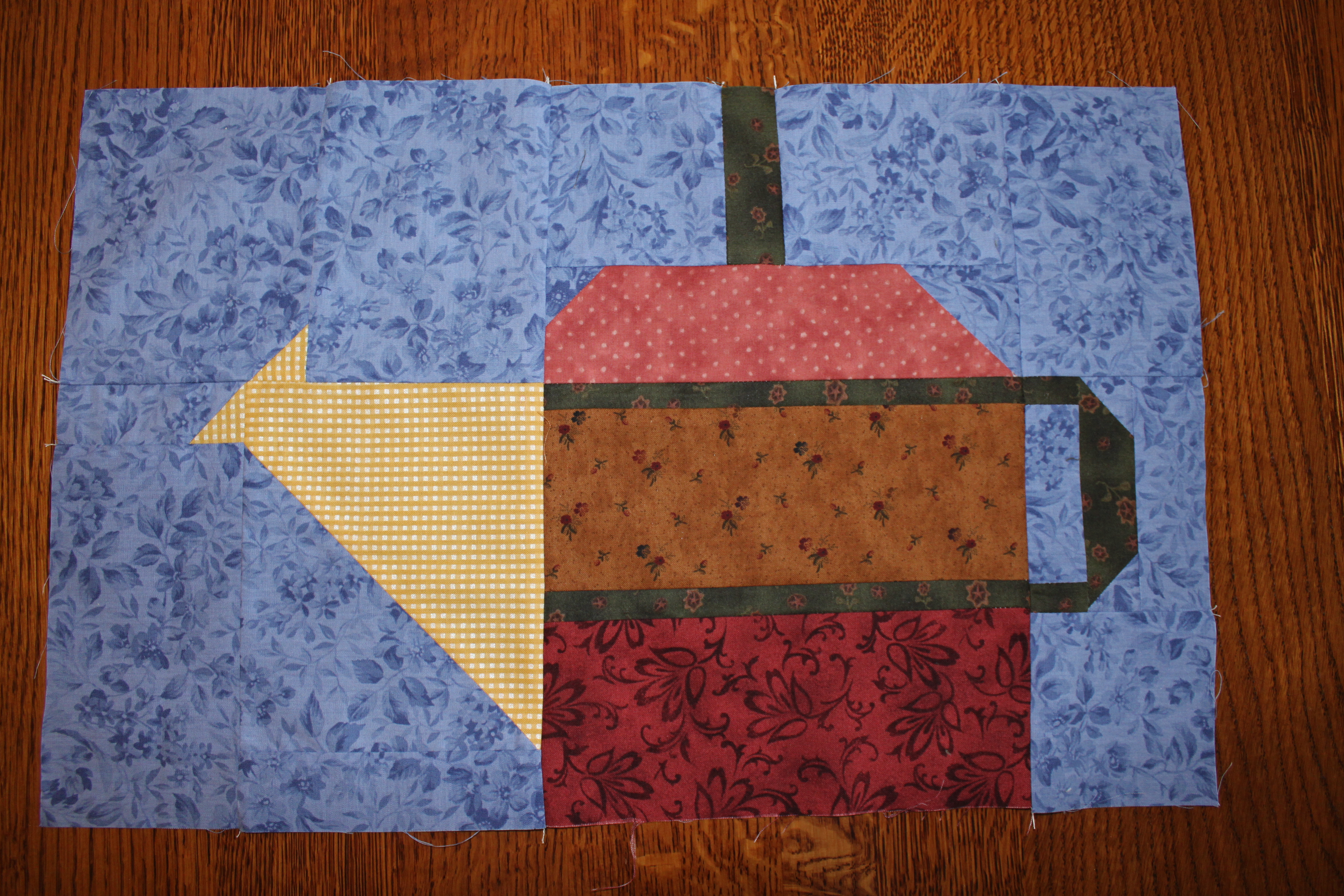 I wanted something to go with the cans and thought about adding flowers and found three flower blocks in Block by Block by Lynette Jensen, that just happened to go perfectly with the watering can blocks. How sweet is that! I like not having to re size a block to make it work.