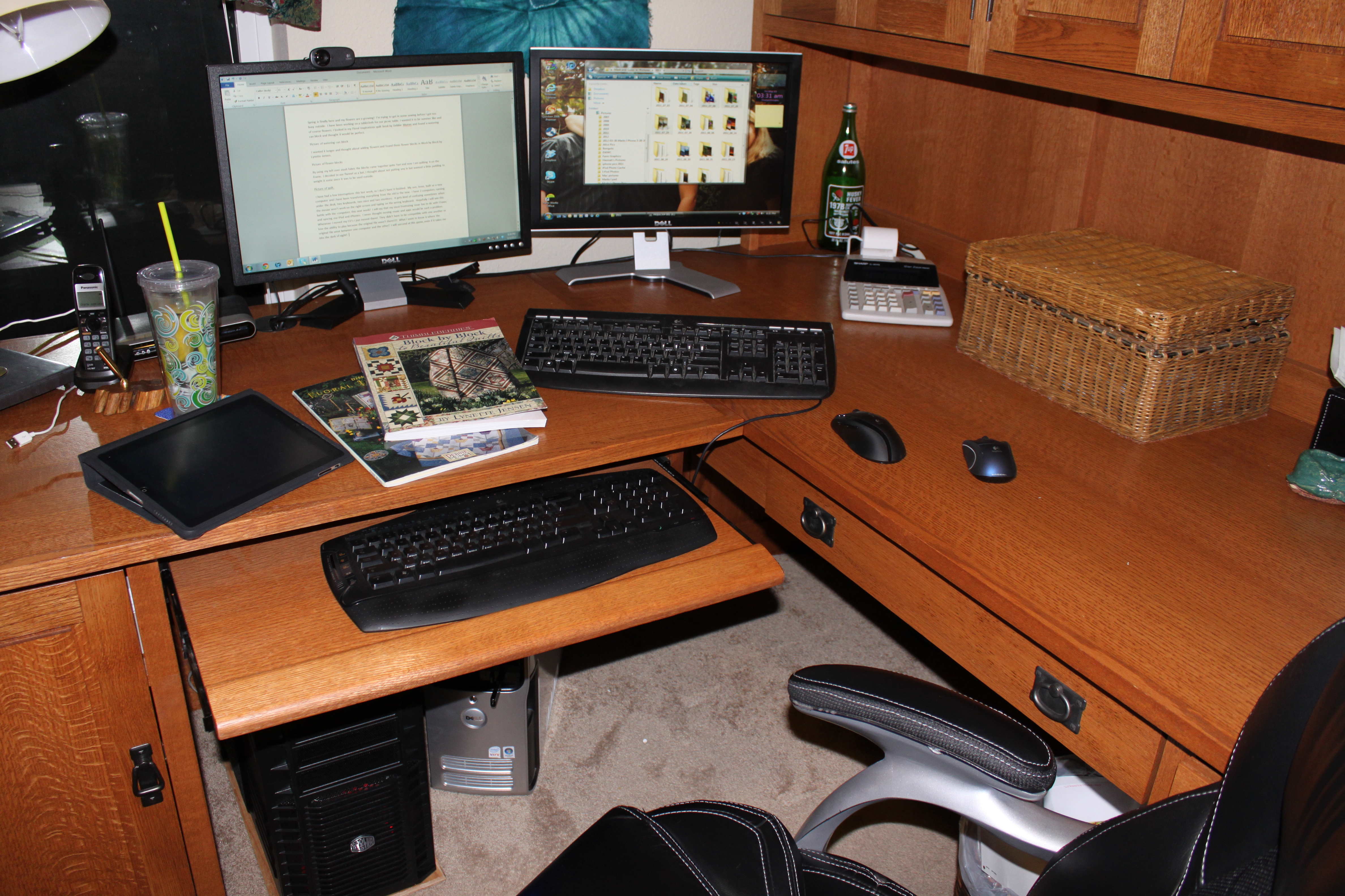 I have had a few interruptions this last week, so I don’t have it finished. My son, Jesse, built us a new computer and I have been transferring everything from the old to the new. I have 2 computers running under the desk, two keyboards, two mice and two monitors. It gets kind of confusing sometimes when the mouse won’t work on the right screen and typing on the wrong keyboard.